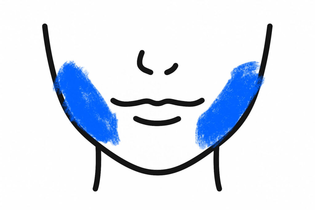 私は下図の青色部分、両ほほがパンパンに腫れました。